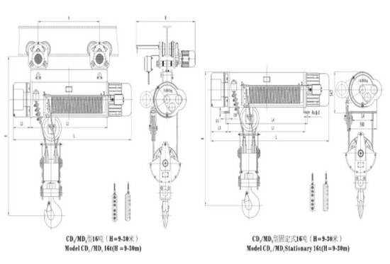 CD1型電動(dòng)葫蘆起升高度: 6m、9m、12m、18m、24m、30m
